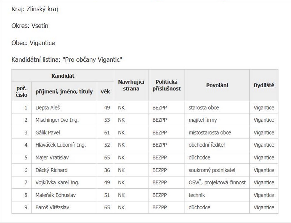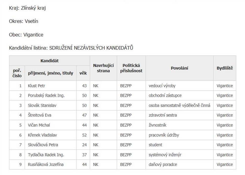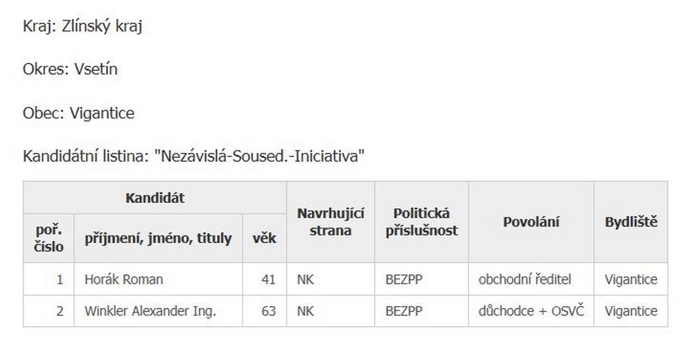 Zaregistrované kandidátky