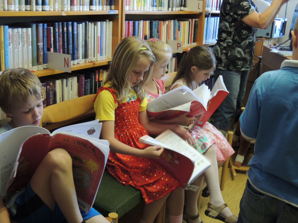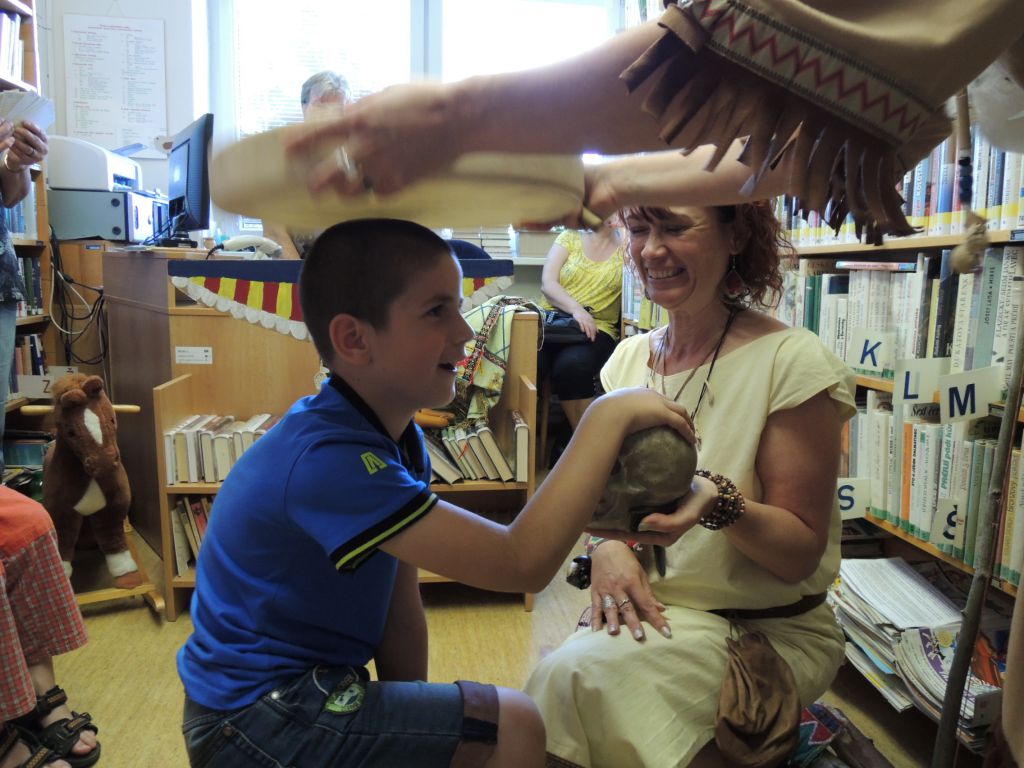 Ve čtvrtek 4. června proběhlo v místní knihovně slavnostní pasování prvňáčků na čtenáře. Sedm dětí z 1. třídy s paní učitelkou Kadeřábkovou a šesti třeťáky jako diváky, vyslechlo v knihovně indiánský příběh. Příběh jim s náležitými rekvizitami zahrály knihovnice z rožnovské knihovny: p. Renata Winklerová jako náčelnice Jarní bouře, p. Erika Halamíčková jako šamanka Černá makovice, p. Ilona Kroupová jako strážkyně příběhů. Děti vystoupení sledovaly se zájmem a na přečtení dalšího příběhu se samy podílely. Následovalo pasování každého prvňáčka, který poklekl u ohniště a totemu, stvrdil přísahou, že bude dobrým čtenářem a bude chránit knihy, dostal legitimaci s roční registrací, neprodejnou knížku pro prvňáčka od Jiřího Žáčka a malou sladkost. Pak ještě prvňáčci předvedli, jak umí číst ze slabikáře. Přítomnost Indiánek využila p. místostarostka k předání odměn za výtvarnou soutěž přítomným dětem, které si ceny nestihly vyzvednout v sobotu na výletišti. Na závěr ještě společný snímek, a do knihovny přibyli noví čtenáři.