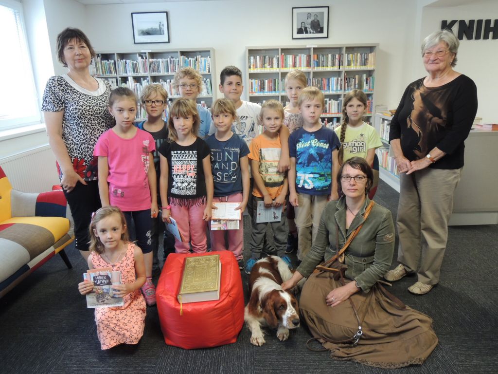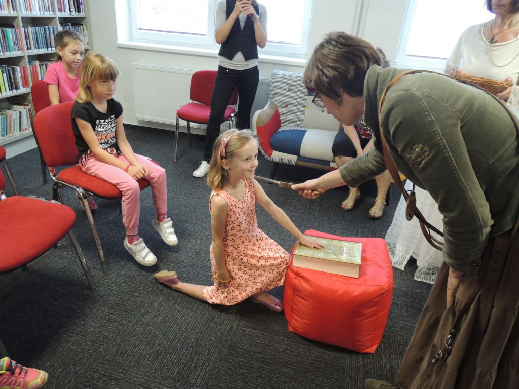 Pátek 23. června 2017 byl pro děti z 1. třídy naší školy opravdu slavnostní. Byly totiž pozvány do naší nově opravené knihovny, kde za účasti paní knihovnice Jany Krhutové, Renaty Vinklerové a dalších 2 knihovnic z rožnovské knihovny a paní místostarostky Hany Foltasové, byly slavnostně pasovány na opravdové čtenáře. Doprovázela je paní učitelka Mgr. Alena Kadeřábková. Pro prvňáčky to byla příležitost ukázat, co se během náročného školního roku naučily. Najednou už písmenka nejsou jen tak nějaké obrázky nebo značky, kterým rozumí jen máma s taťkou a babička s dědou. Složily se do slov, která umíme nejen přečíst, ale i napsat. A kdo už umí číst, ten si rád vezme do ruky knížku a neprohlíží jen obrázky. Jestli se ale může stát i čtenářem knihovny, to nemůže posoudit paní učitelka, dokonce ani pan ředitel, ale pohádkové princezny. Vydali jsme se za nimi, poslechli si pověst o dvou sestrách-princeznách z rožnovského hradu a ukázali jim, jak se nám podařilo zvládnout a poznat všechna písmenka. Pověst je o to více zaujala, protože byla nejen předčítána, ale také zdramatizována a vystupoval v ní opravdový pes Orion. Před samotným pasováním musely děti přečíst určitou část textu a slavnostně odpřisáhnout „čtenářský slib“. Šlo jim to báječně. Každý z nich byl princeznami pasován na rytíře krásného slova, dostal svou první vlastní knížku, dáreček, přihlášku do knihovny a sladkou dobrotu. Všem se nám v knihovně líbilo a děkujeme za příjemné chvíle strávené v knihovně.