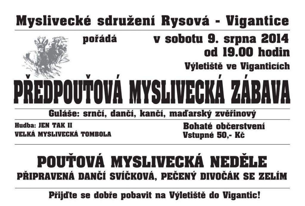 9. srpna - Pozvánka na mysliveckou předpouťovou zábavu