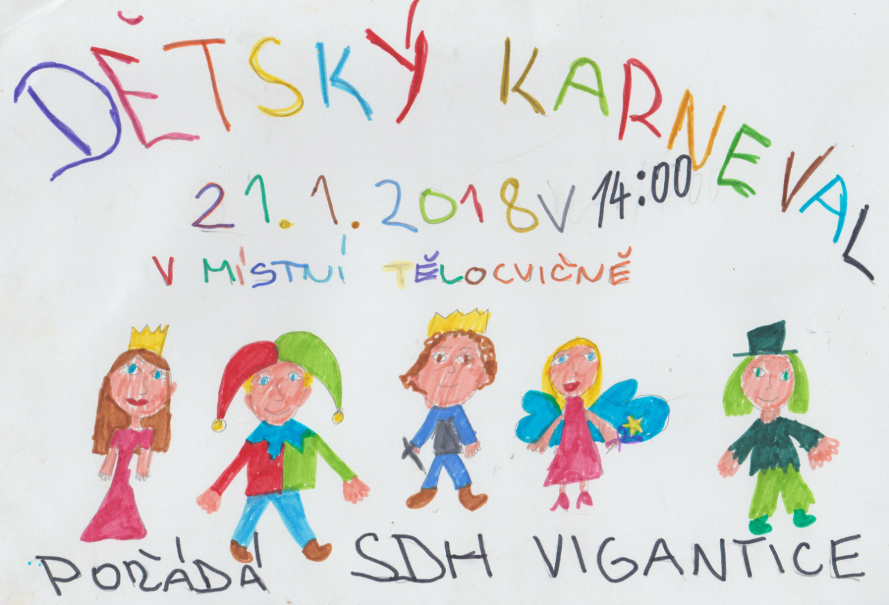 Pozvánka na Dětský Maškarní ples, který se uskuteční v neděli 21.1.2018 od 14:00 hodin v místní tělocvičně.