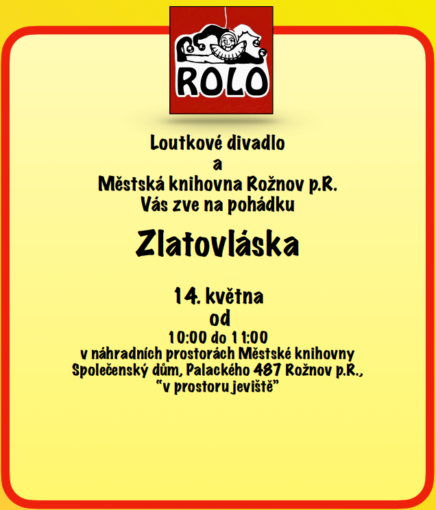 Další představení loutkového divadélka. ! Platí změna místa konání - Společenský dům, Palackého 487, Rožnov p.R.!