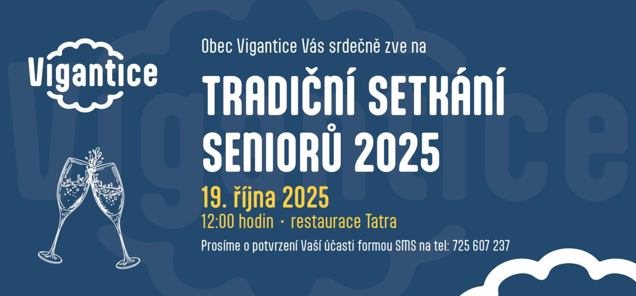 Obec Vigantice Vás srdečně zve na tradiční setkání seniorů, které se koná 19. října 2025 od 12:00 hodin v restauraci Tatra. Prosíme o potvrzení Vaší účasti formou SMS na tel: 725 607 237.